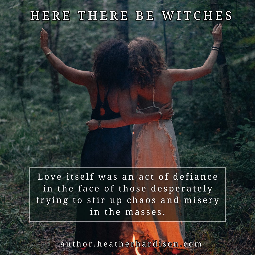 It’s a prequel of sorts but can stand alone because it chronicles one of the past witch lives of the main characters in The Divining Sisters Series. If you want to read all my novels, I would suggest reading them in the order I wrote them starting with Book 1 in The Divining Sisters Series – The Call of the Cards. I say that because I think it’s more fun and interesting to discover the past lives as the characters discover them on their awakening journey. But if you aren’t sure if you want to commit to a series, you can read Here There Be Witches on its own. I wrote it to be able to be a stand alone novel for that reason.